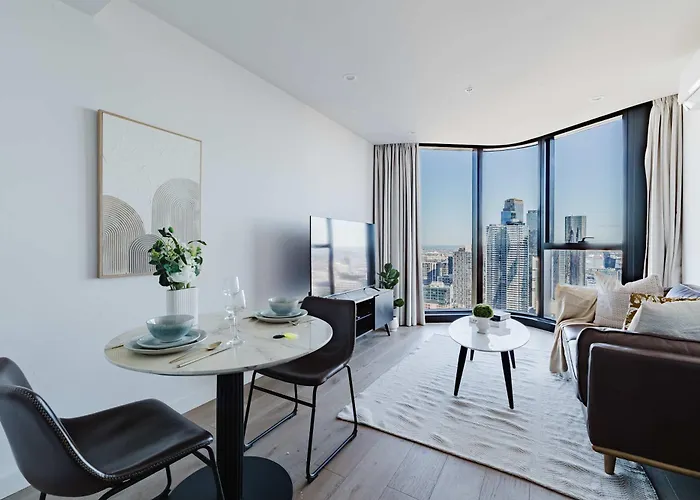 Das 46 m² große High-Rise Modern Cbd Apartment Stunning City Views Melbourne City empfängt Reisende im Herzen von Melbourne City, in einer Entfernung von 20 Minuten zu Fuß von AWAY der Eureka Skydeck 88 Aussichtsplattform entfernt. Die Gäste können sich nach einem langen Tag in einem Hallenbad entspannen.